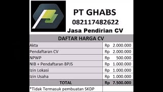 Perusahaan PT GHABS menyediakan layanan pembuatan Perusahaan, seperti cv, Koperasi, CV, Yayasan Wilayah kami meliputi : Kota Bandung, Cimahi, ...